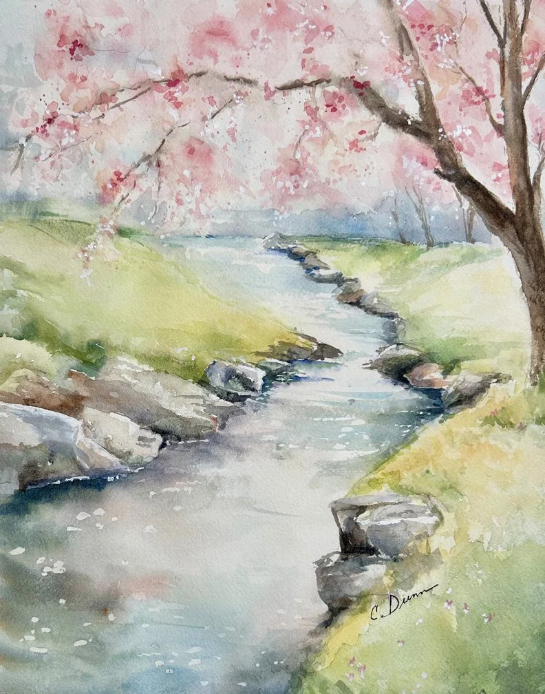 For most of my adult life, I identified as a mother and a math teacher. I would have never imagined that moving to a new state and enrolling in a community art class could change the way I view myself and my surroundings. I see the world through a different lens as an artist. I have been incredibly lucky to have met so many gifted artists and teachers. They have all contributed to my journey and I am so grateful. I am passionate about continuing to learn and grow as an artist. To the right is A Quiet Bend, an 11x14 inch watercolor, presently at Picture This gallery.